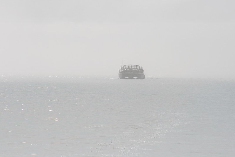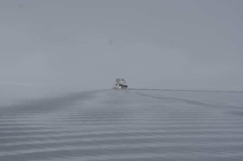 We were wrong. The fog did not lift if anything it got a little thicker. We noticed that GeRu had an almost indiscernible image on our radar. Their mast was down of course and their radar reflector was just inside the cockpit.