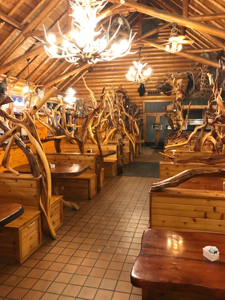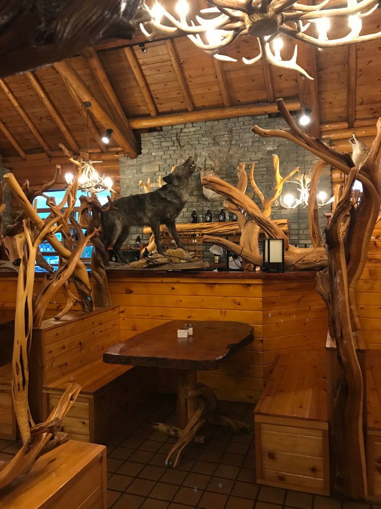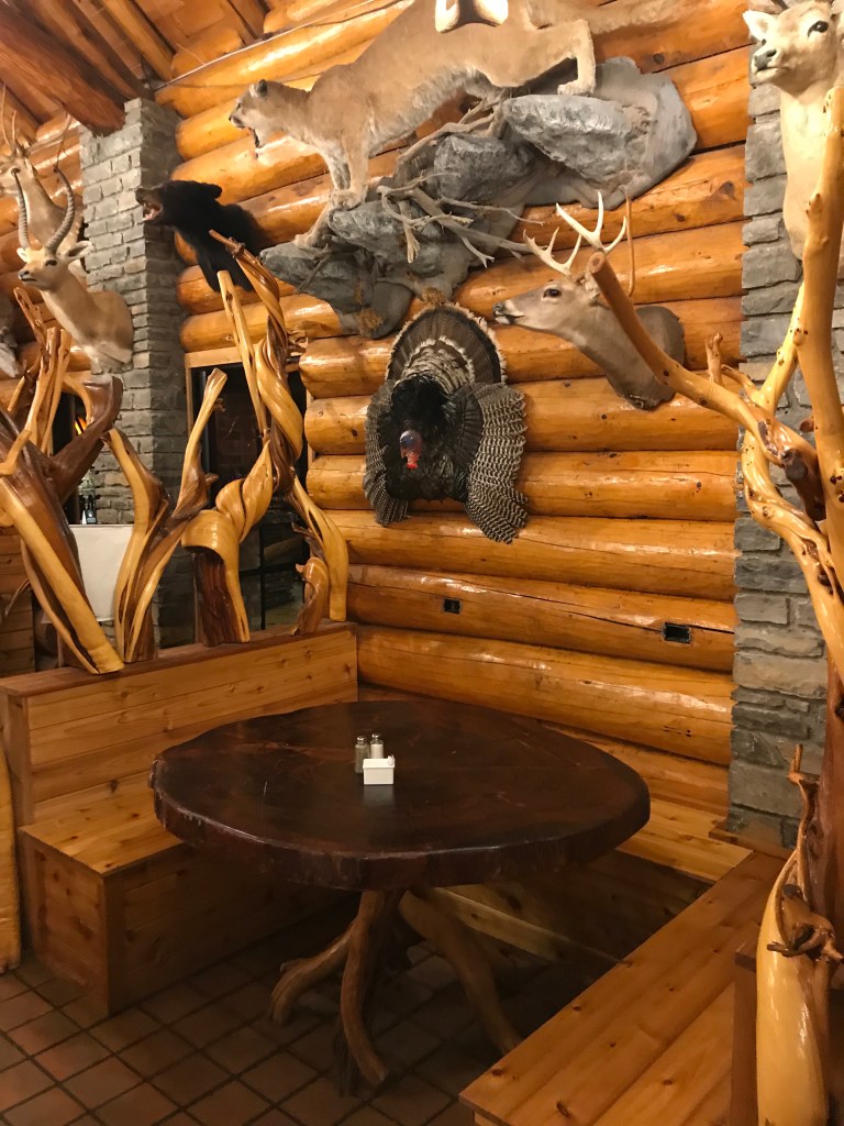 Our dinner companions tonight. One of the stranger Italian restaurants we been in. I kept expecting hobbits to show up. Old-world Italian fare is served in a rustic lodge with hand-carved fixtures & stuffed trophies.