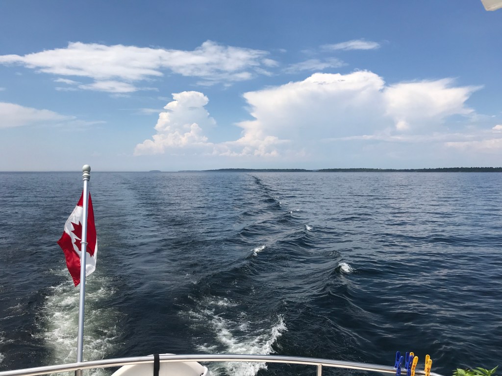 Fast forward to boat ownership and I am back to standing on the porch – the cockpit this time – to fine tune my prediction skills again. The problem is that as a Looper one is constantly on the move and rarely has long enough in one place to learn its micro-climate. So the weather lesson for today was – don’t forget to look behind.