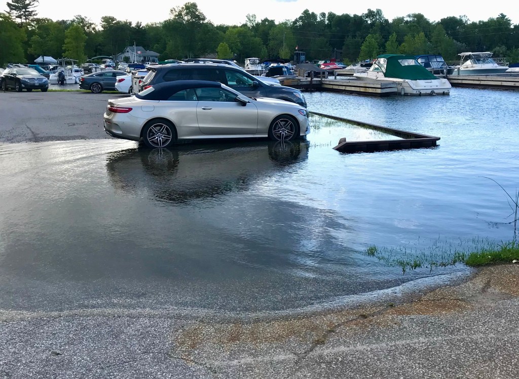 Storms can profoundly affect the Great Lakes, sloshing water from one end of a lake’s basin to other, sometimes in a matter of hours. The reversing current in Little Current is one symptom. Storm surges and seiches in the Great Lakes can also change lake levels dramatically during storms. They can arise suddenly and unexpectedly. While most are not dangerous, some have been deadly. Here is one example of depth changes seen in Honey Harbour.