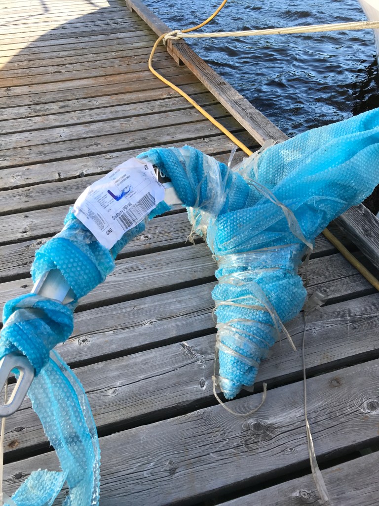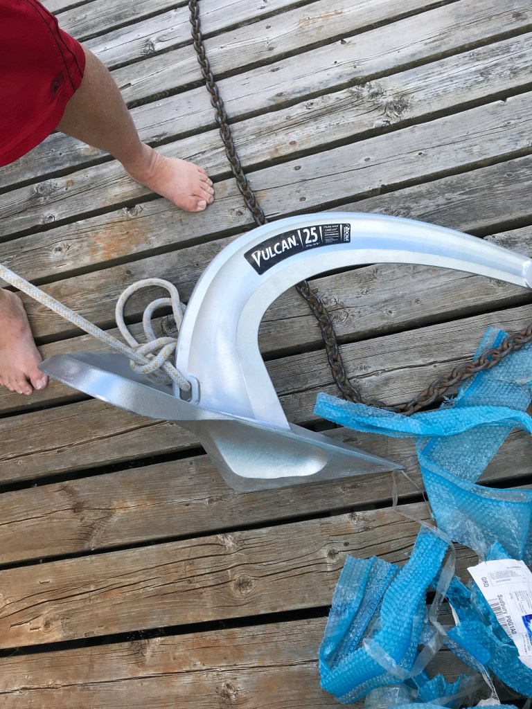 Our new anchor arrived at Wright’s Marina in Britt today. Kudos to the Loomis driver who found the marina on the first try. The location is somewhat off the beaten path but we wanted the anchor so we could use it during our run down Georgian Bay.