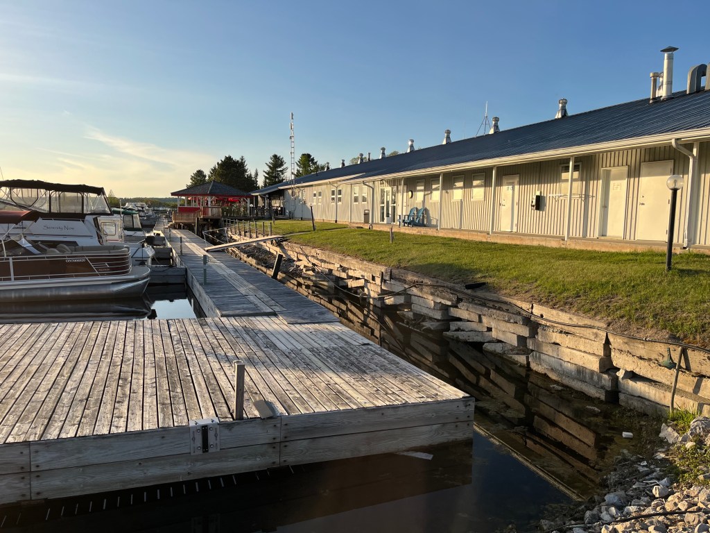 Wye Heritage Resort is a nice facility with a restaurant on site. The restaurant is pub like and but the menu offers better variety and quality than the average burger and fries. A surprising number of boats on the hard, made us wonder if the boating season gets underway later here, or if covid is having a lingering effect, or maybe the fuel prices is causing a delayed start.