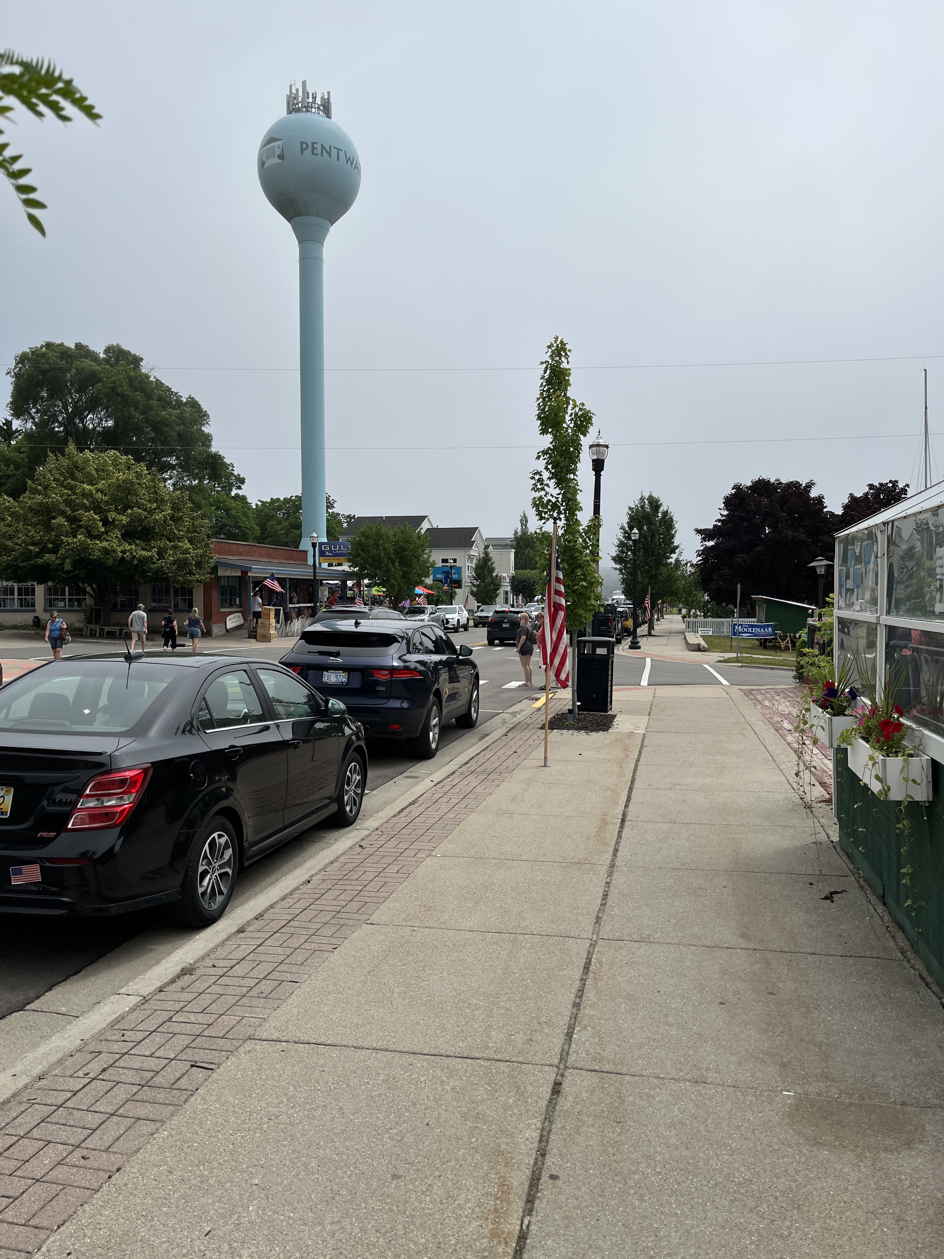 Pentwater doesn’t seem to be on a lot of Loopers itineraries. But it should. It is a cute little town with the municipal marina on the north shore next to the Main Street. the park between the marina and street has gazebos and tables for boaters to hang out and visit over “dock tails”