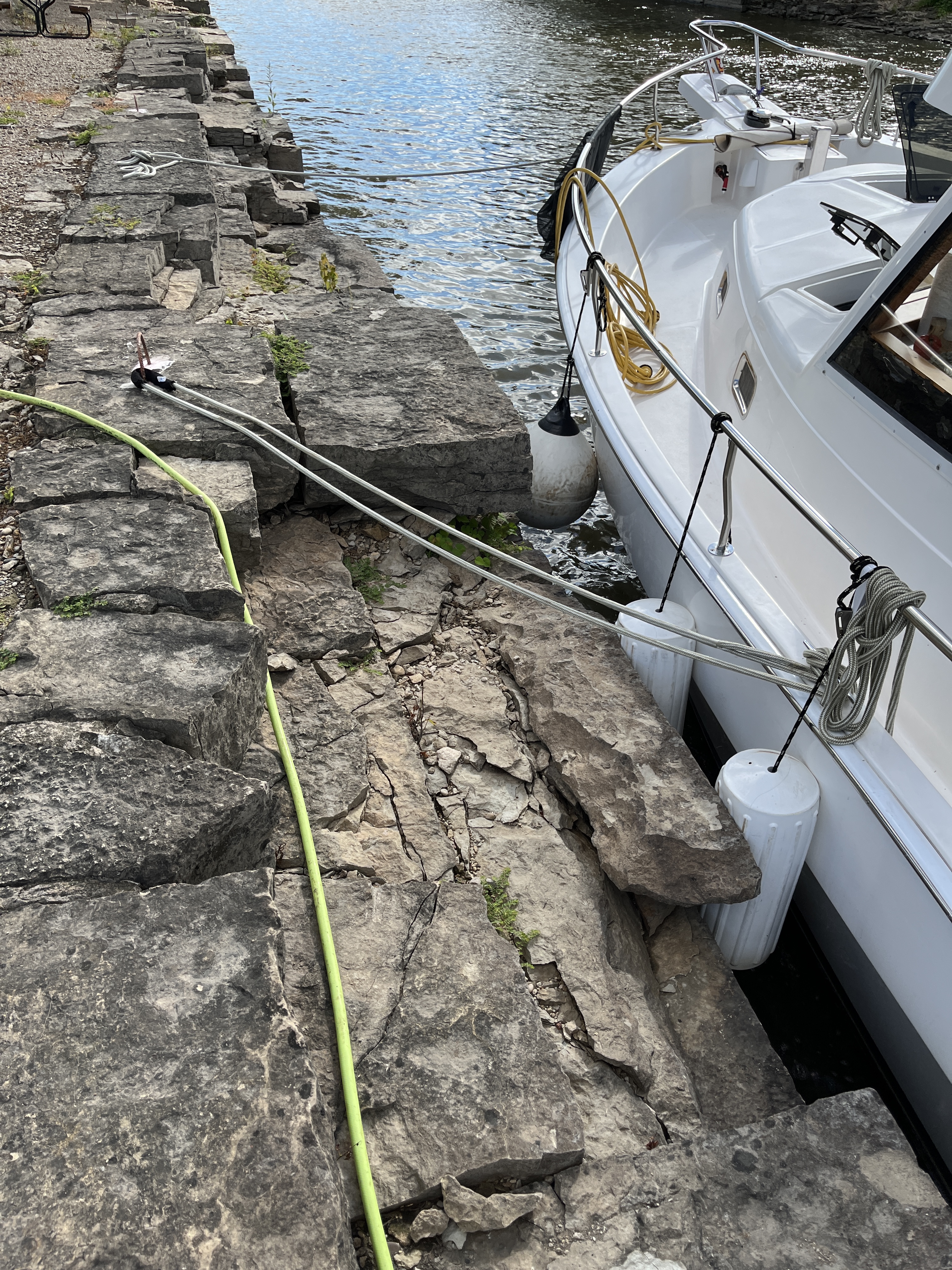 The marina was almost a covid casualty until a local family of boaters decided to take it on. They have made great strides so far installing power and water on lock wall. Adding go-huts and fill to the top of the wall and breakwater. They also have a permit to maintain a depth of seven feet inside. This will allow more boats our size and bigger to be even more protected. Also the wall is a little rough and requires lots of fenders, chaff guards and the agility of a mountain goat. We wish them well.