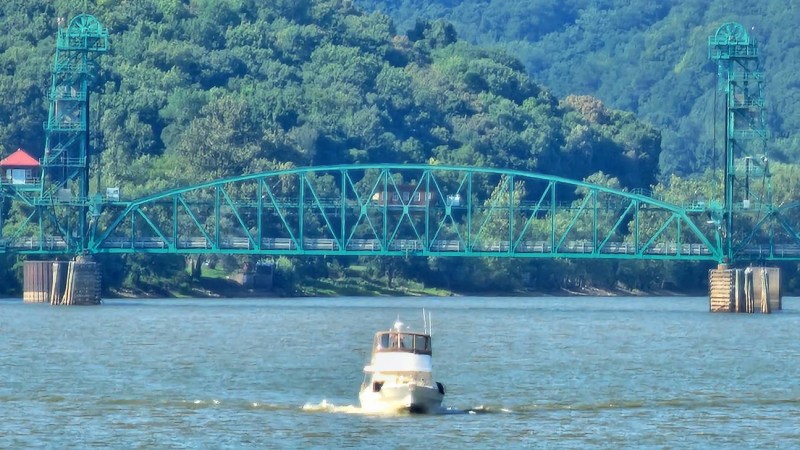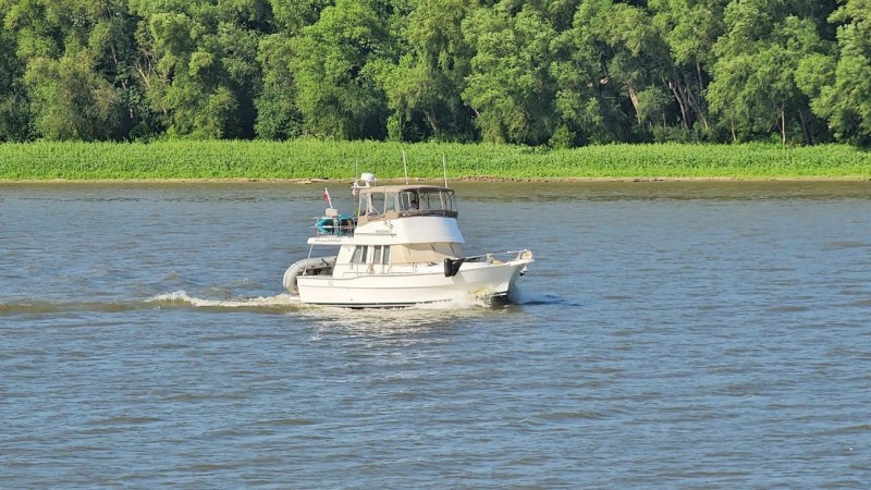 We were headed to Grafton on our last day on the Illinois river. We monitor channel 16 on the VHF radio (13 if there are barges around) and we saw a tow on the right descending bank and Linda said “hey that’s Capt. Dan Thomas”.