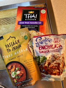 Side note: We are totally in love with the selection of prepared sauces for sale in the US. They really reduce the prep and cooking time; minimize the mess and the volume of dishes. Great for a quick meal after a long day.