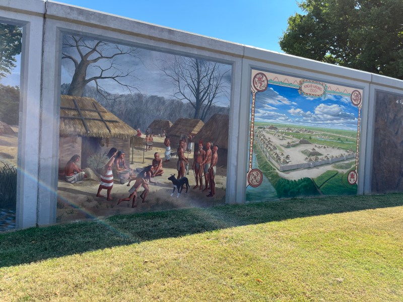 The town is one of the few in the US surrounded by a flood wall. Not the most attractive thing to see when arriving by water. However, a far seeing council and community commissioned a set of murals depicting the town’s history.