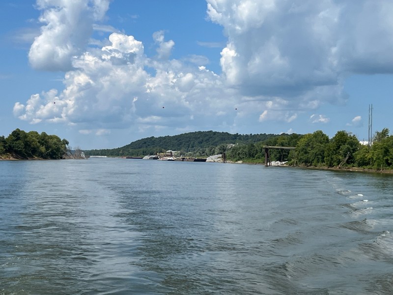 Some told us the Cumberland was more picturesque. Some said not as much tow traffic. This last is certainly true. I usually verify the lock queue reports and transit times before we leave the dock. The Tennessee River is certainly busy and the tows are large; often requiring that they split into two sections which are locked through separately and then reassembled. However others believe the long wait times relate to the lock attendants at the Kentucky Lock and Dam. Believing the attendants do not like pleasure craft and make them wait for hours holding station below the dam.