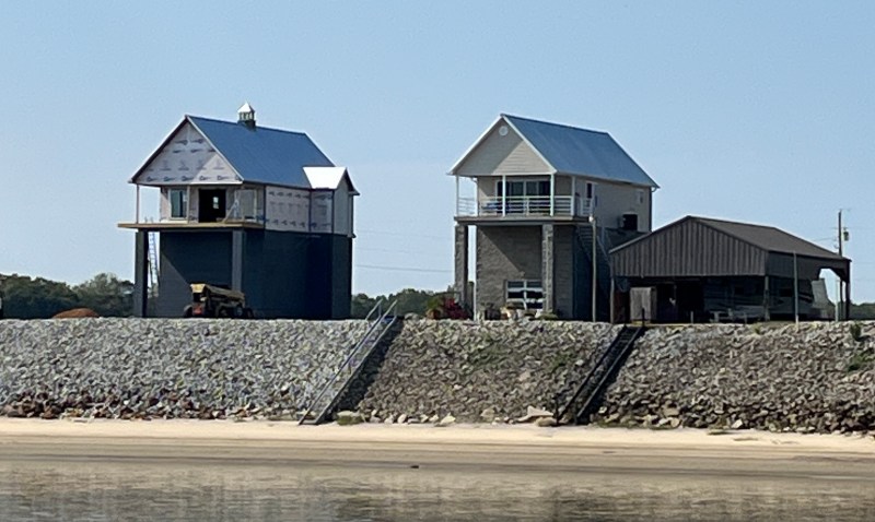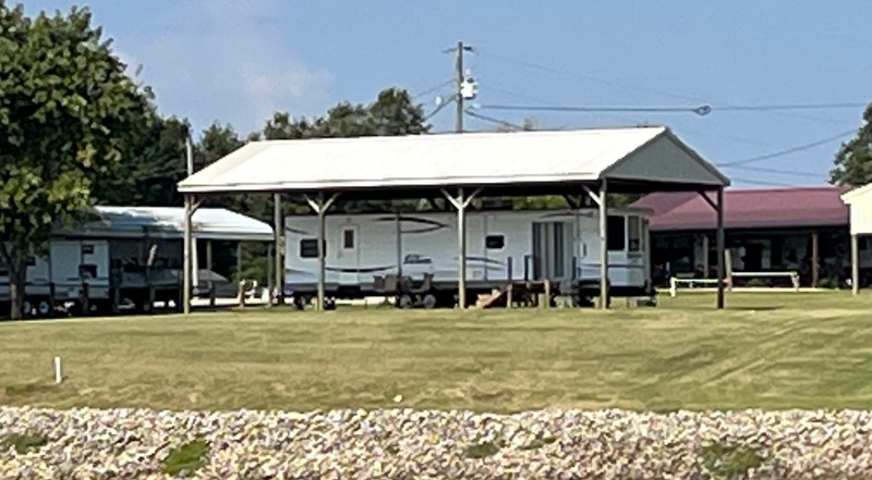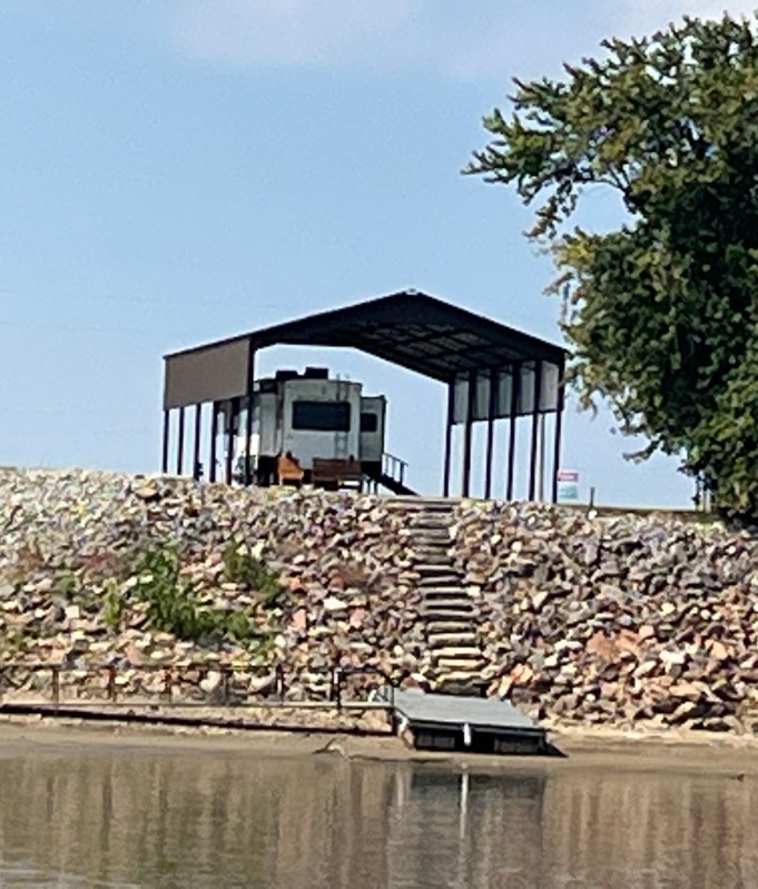 There are a few housing trends we have noticed on the Tennessee. The first is the trailer under a roof. We presume this better shades the trailer from the sun and resulting heat. Most are simple but some get quite elaborate.