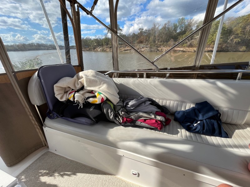 We are usually quite diligent about watching the chart plotter but became more focus after hearing a tow captain waiting for another boat to get off a sand bar. He said to use electronic charts as the Corp of Engineers can’t keep the navigation bouys in the right place as things shift so quickly. Many boats, and certainly, all the tows upload data from their depth sounder to companies like Garmin who update the depth information frequently. It was hand steering, following the navigation line while switching between the nav charts and fishing chart options for an hour or more. All good practice.