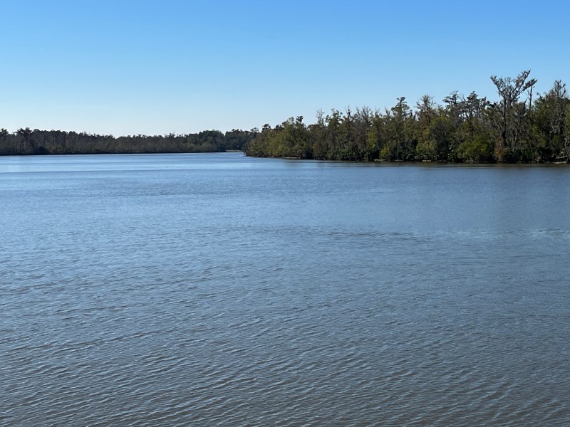Two more tows in quick succession then we settled into watching the scenery roll by. It changed from one bend to the next from forest to bayou. Too cold for alligator spotting but brown pelicans entertained us by winging low over the water, swooping up 10-15 feet, and then diving down for some tasty morsel.