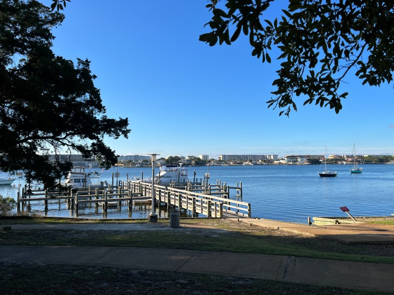 A free dock at Fort Walton Beach appeared to be a reasonable distance for a day cruise and was sheltered from a north wind. There were no current reviews on ActiveCaptain or Navionics. It was apparently damaged in 2020 by hurricane Sally and was shutdown. However, I was sure I had seen a post from someone who had been there recently. They said the docks were repaired and open but only the T-head and first slip were deep enough for a vessel our size.