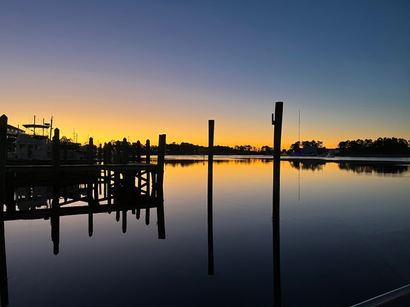 Before I had a chance to post this, one of our buddy boats knocked. It was 8:30 and they had decided to go at 9:30. They travel faster than we do. That meant we would be arriving in the dusk. At a marina that is well up a narrow channel and the outer bay features miles of crab pots that will wrap around the propeller shaft of an unwary boat. Thanks, but no thanks.