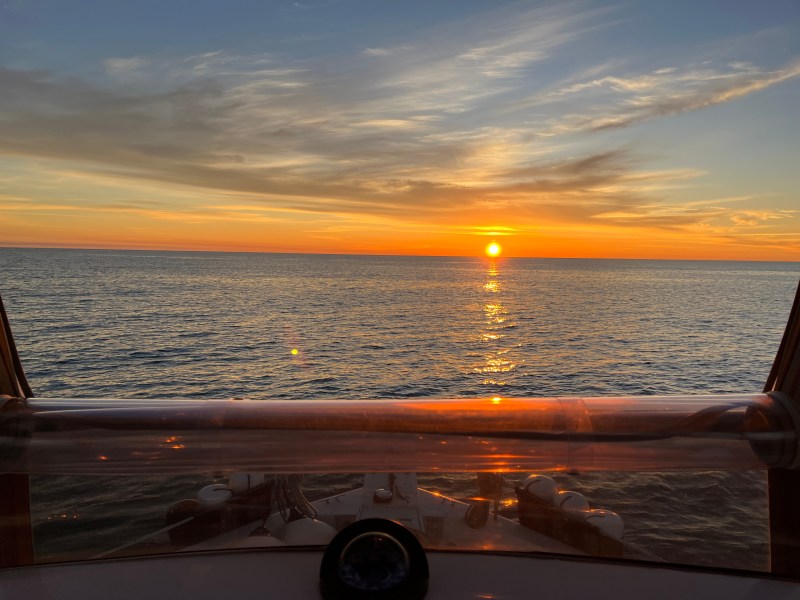 We started in complete darkness at 4AM in order to get to our destination before the wind and waves picked up. As it turns out it was fairly calm and uneventful except for piloting the boat out of the marina 3 and a half hours before sunrise.