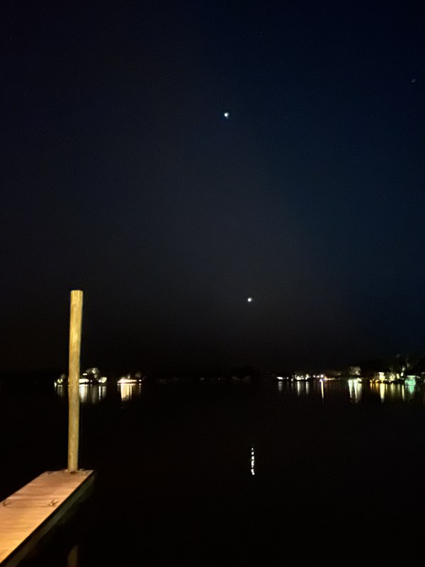 The view out our front window. Juniper and Venus align about once a year and we are here in this slip to enjoy it.