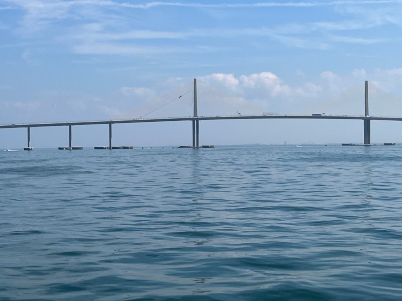 Directly through the bridge and 20 miles further is the city of Tampa Bay. Through the bridge and on the port side is St Petersburg where we started this adventure. We took our bareboat charter captain training there five years ago. Our primary takeaways were: sailing a large boat is a lot of work, and cruising out of sight of land is an entirely different kettle of fish. Neither of which we care to sample.