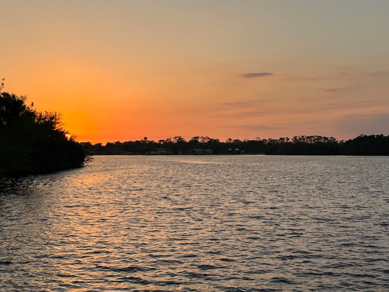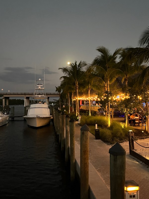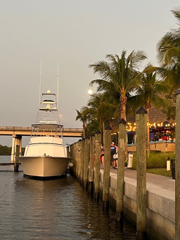 Our first stop was Sweetwater Landing, an odd marina. The protected slips have a collection of almost derelict boats up a canal. The transient slips are out along the river – as far as possible from the amenities – and right beside a massive tiki hut restaurant.