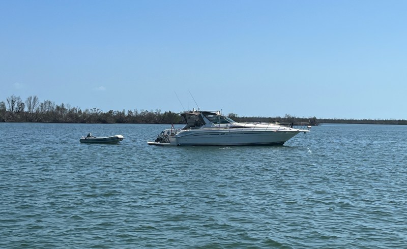 A leisurely breakfast in Punta Gorda was followed by a three hour cruise to an anchorage called Pelican Bay. The bay is a popular destination for local boaters who come for the day. Beautiful white sand beaches drop ofF quickly so it is easy to pull a boat close to shore.