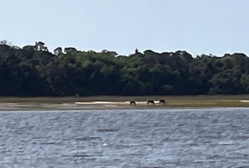 Our route through the southern third of the ICW in Georgia was just inside the barrier islands or Golden Isles according to the marketing folk. We bypassed Cumberland Island but did catch a glimpse of the famous wild horses. Anyone who was horse mad or had a horse mad child will be familiar with the book Misty of Chincoteague and understand why I was looking forward to seeing the only unmanaged wild horse herd in the US. Canadians will recognize the similarities between my photo of the horses and any moose photo.