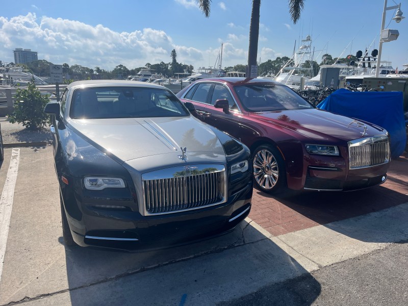 The stunning scenery continued on shore when I took the dogs for a walk. Just call me provincial but I have never seen so many Maserati in one place before. Four parked across from this roller and another being parked by the valet. There were two Rolls Royce, a Lamborghini, and a Bentley parked among the lesser vehicles like Audi, BMW, Tesla, and Mercedes. All here for lunch at the marina restaurant which otherwise looks typical.