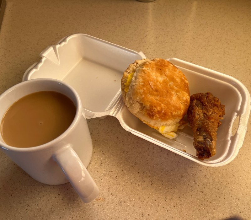 This stop also boasts of great fried chicken in the grill inside the gas station. We already had plans for supper but they did open at 6AM for breakfast. A breakfast biscuit and a drumstick washed down with a hot. coffee and I was ready to tackle the crossing.