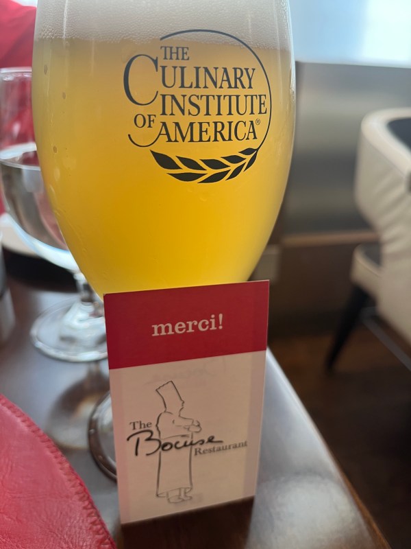Plus, we had dinner at Bocuse in the Culinary Institute of America. Wonderful to have white linen and French service from young people learning their art. We thoroughly enjoyed the students enthusiasm and I empathized with the server opening his first bottle of wine at table. I remembered sweating bullets the first time I did. The servers can not receive tips but a twenty percent charge added to the bill goes to the Institute’s scholarship fund. I am sure it helps as the tuition is $35,000.