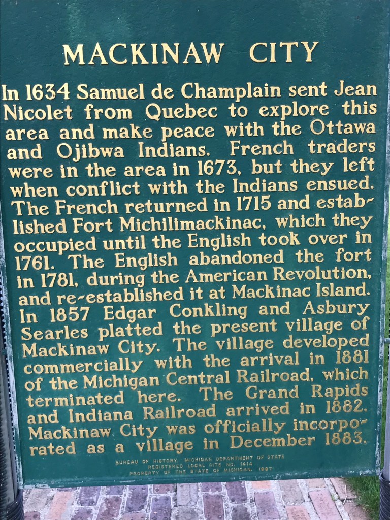 Mackinaw City is at the northern tip (headland) of Michigan’s Lower Peninsula along the southern shore of the Straits of Mackinac. The area is affectionally referred to as the Tip o’ the Mitt.